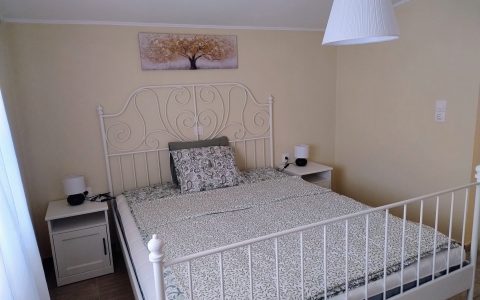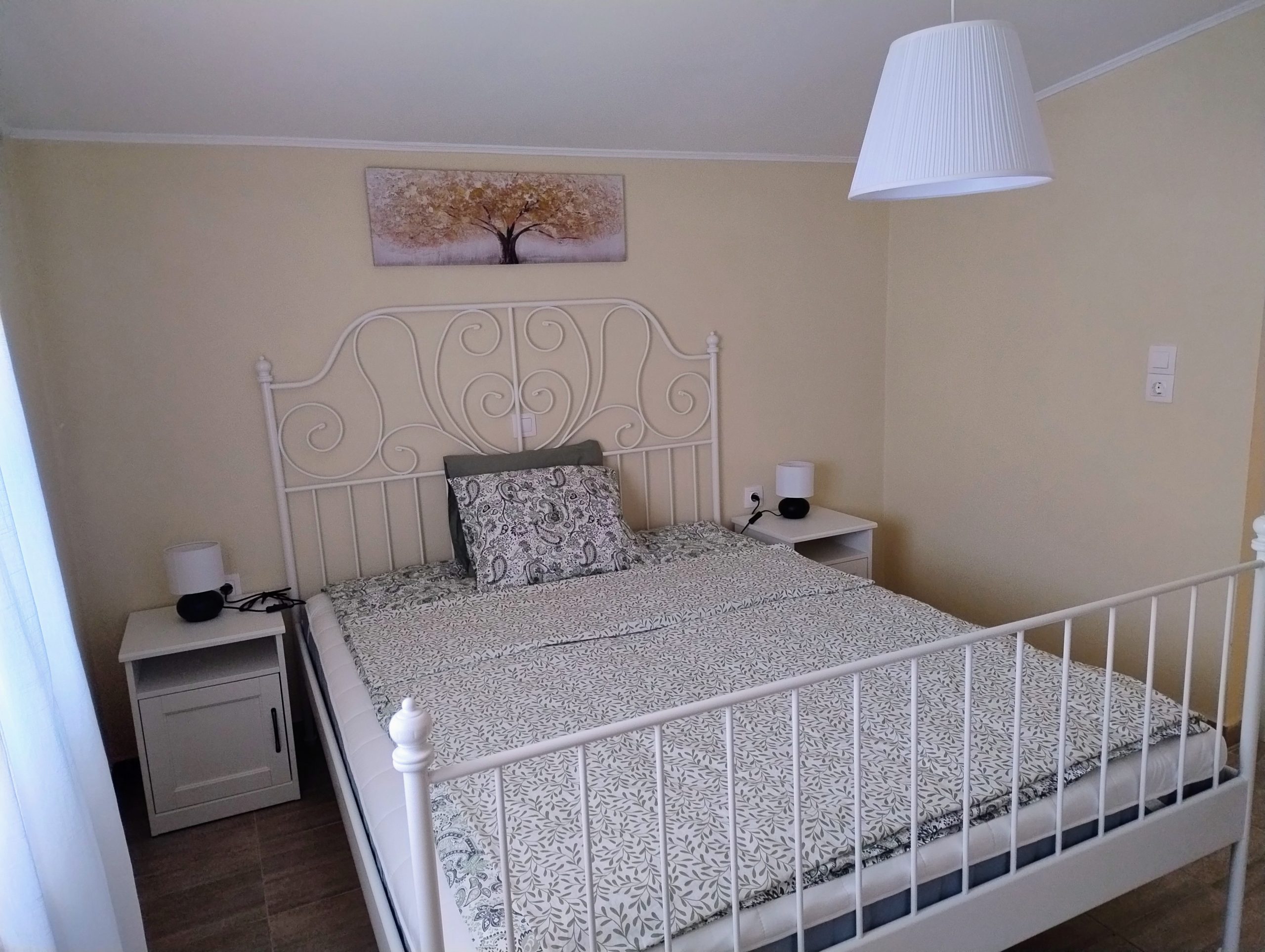 Zwei Schlafzimmer mit je einem Doppelbett und Einbauschränken.