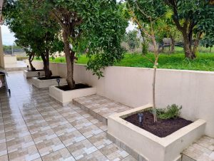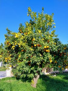 Die vorhandenen Zitronen-, Mandarinen- und Orangenbäume haben wir durch Feigenbäume, Rebstöcke und einen Pfirsichbaum ergänzt.